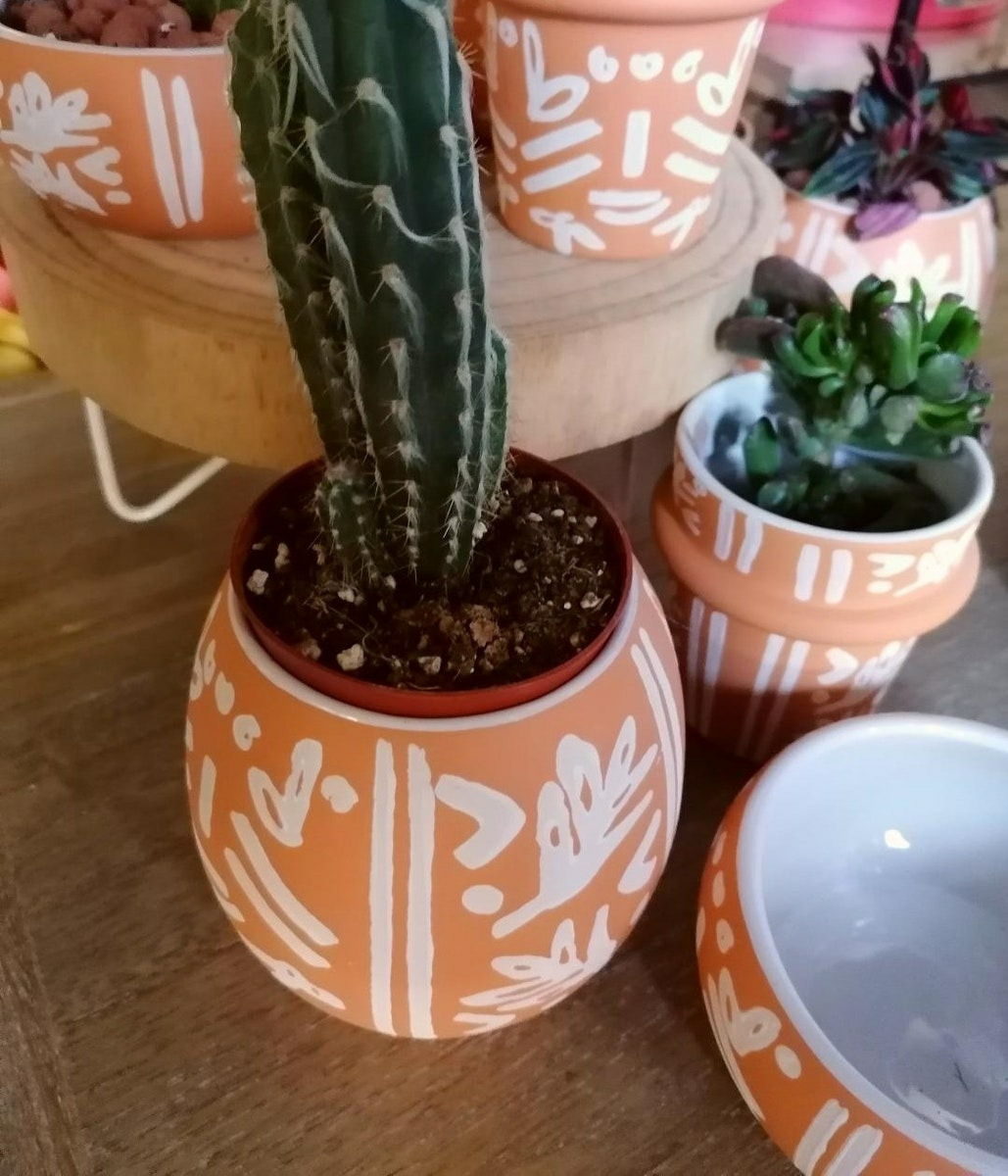 Très joli cache-pot à succulente de couleur terracotta et imprimé ethnique, idéal pour vos plantes intérieures, succulentes, cactus, ... on aime son design original et son coloris naturel, il viendra enchanter votre intérieur, blacon ou terrasse !