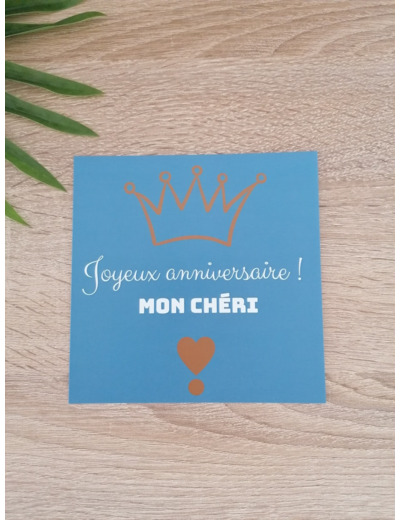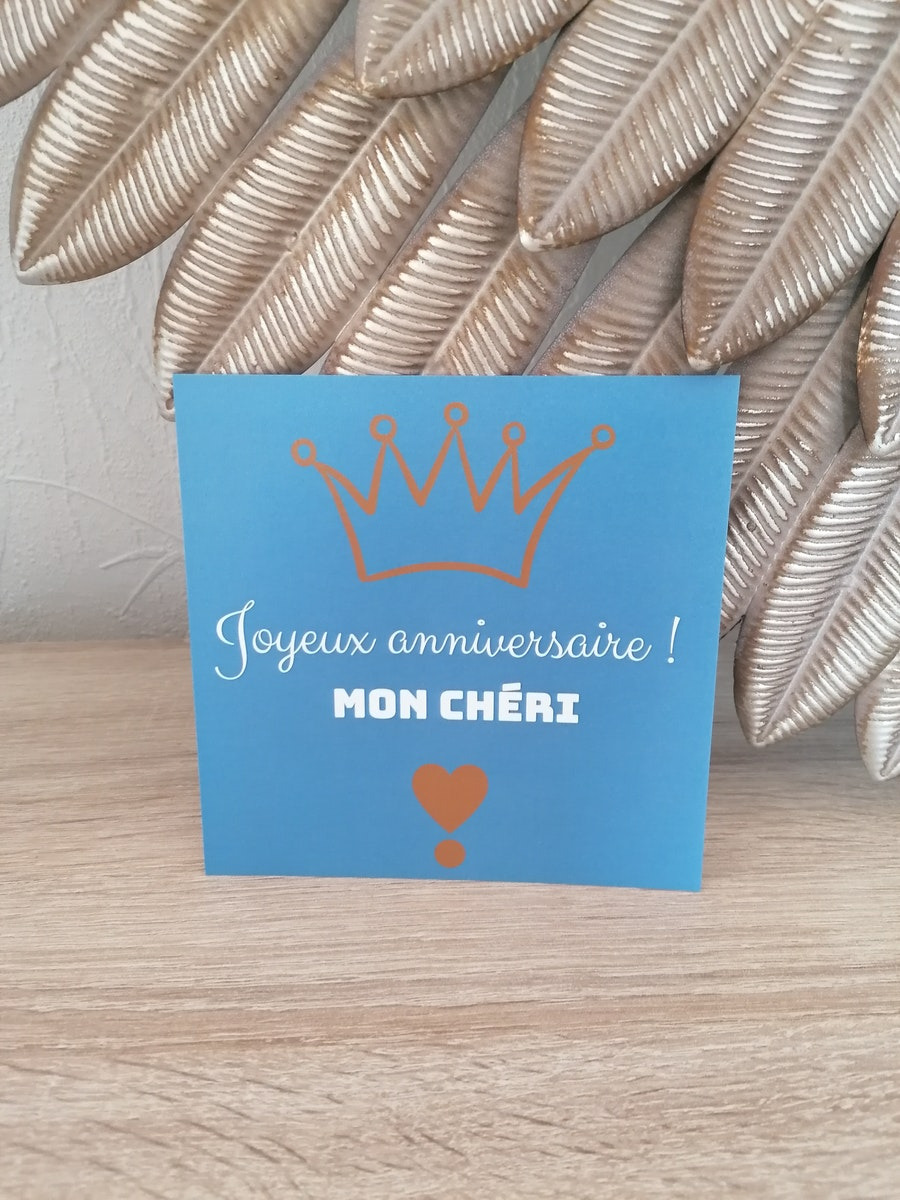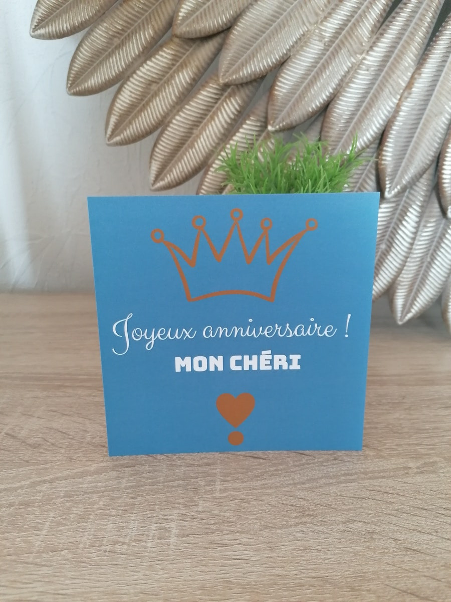 Carte "Joyeux anniversaire mon chéri" à offrir à un(e) ami(e), un membe de votre famille, un collègue, un voisin... créée et fabriquée dans notre atelier maison "Toute la maison en parle".