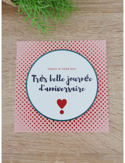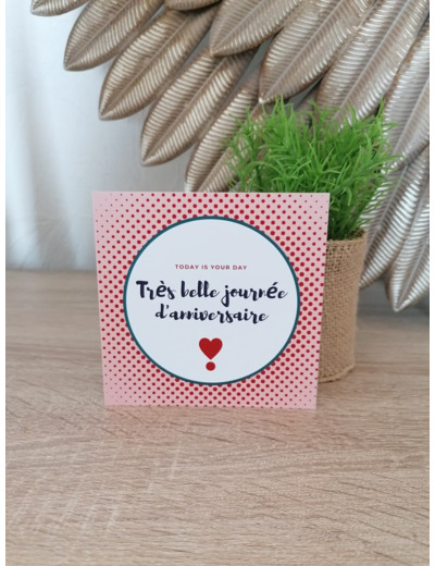 Carte "Très belle journée d'anniversaire" à offrir à un(e) ami(e), un membe de votre famille, un collègue, un voisin...créée et fabriquée dans notre atelier maison "Toute la maison en parle".