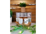 Très joli coffret de 4 gobelets à espresso aux motifs assortis avec soucoupe en bois, idéal pour prendre son café ! Un coup de coeur de la boutique.