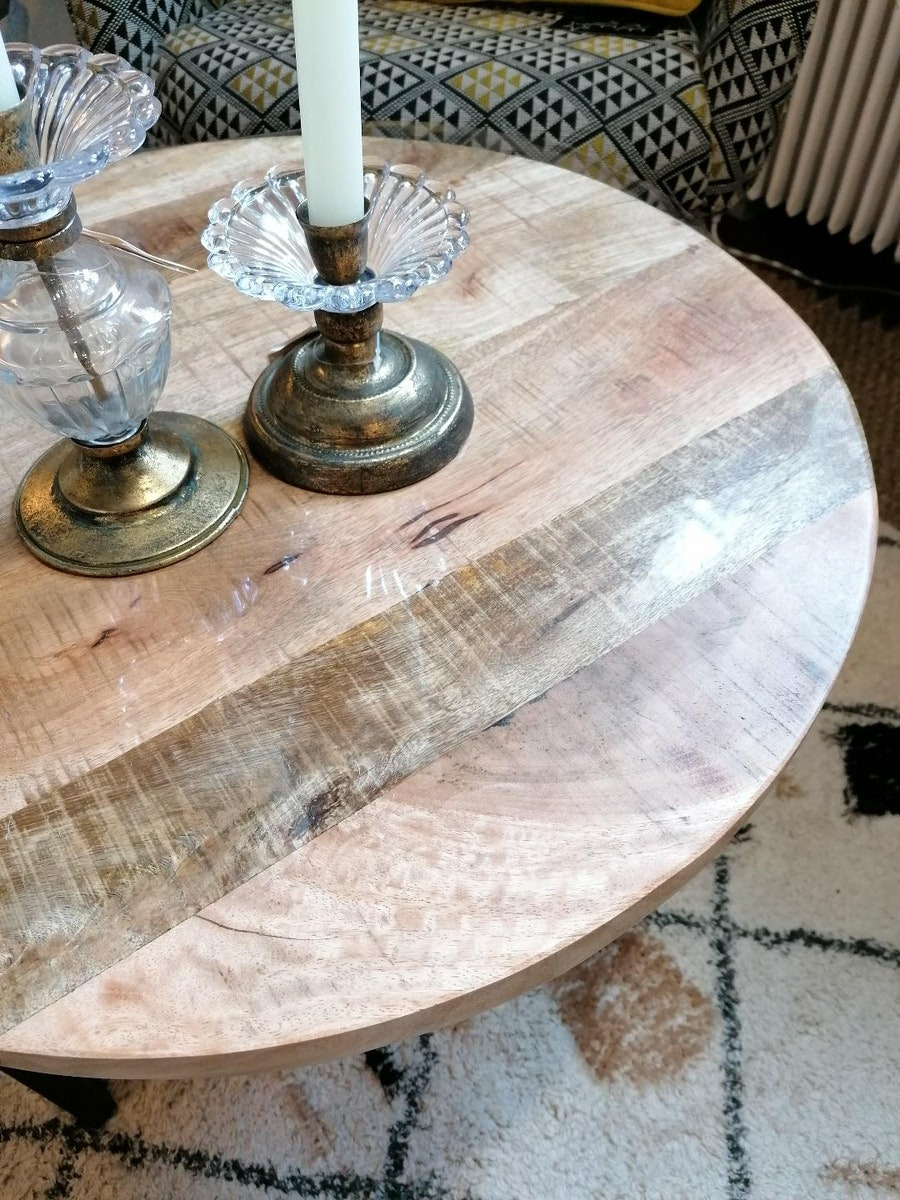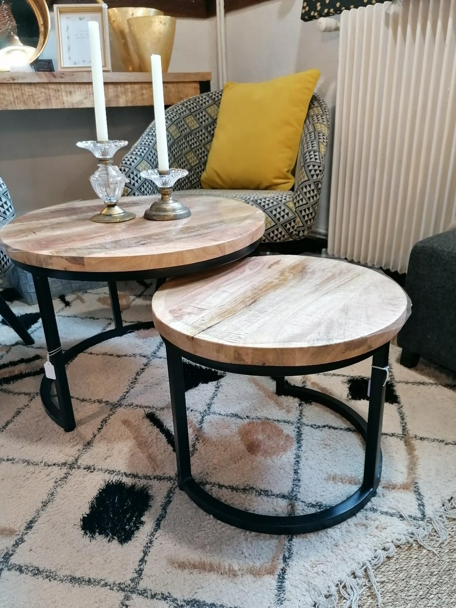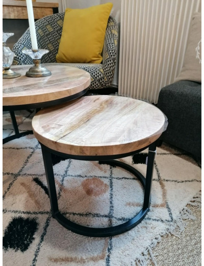 Joli duo de tables basses en bois massif, le moyen modèle s'accorde parfaitement avec le petit pour un effet "tables gigognes" ! Un vrai coup de coeur pour ces tables au design original avec une belle qualité de bois brut.