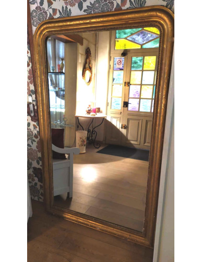 Ajoutez une touche d'élégance intemporelle à votre intérieur avec ce très grand miroir Louis-Philippe. Fabriqué en France, ce miroir au mercure ornée d'un **cadre doré à la feuille** sublime chaque espace qu'il occupe. Que ce soit dans une entrée, un salon ou une chambre, ce miroir est le parfait reflet de la sophistication française.