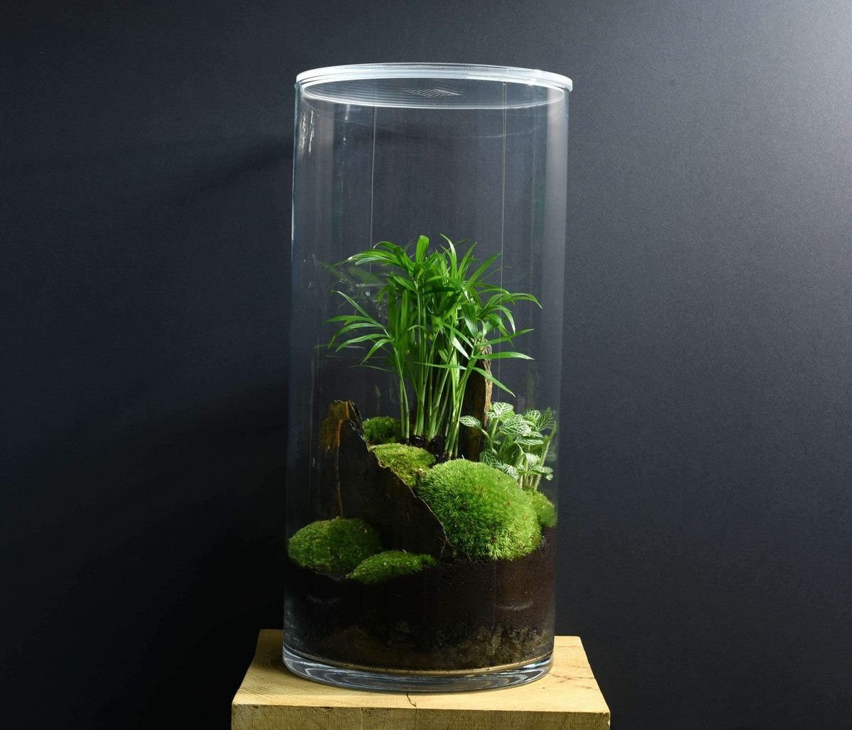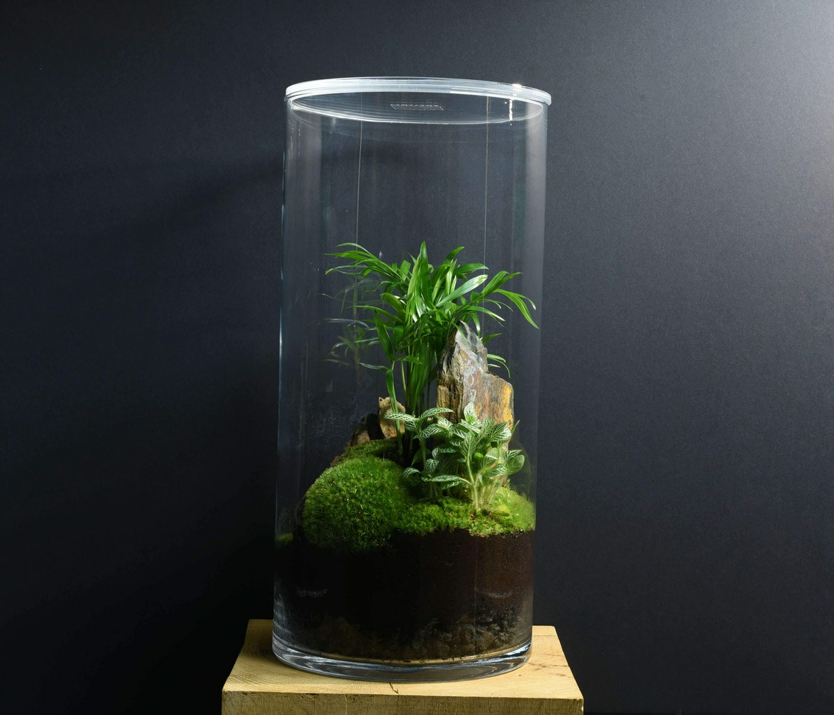 Cette gamme de terrarium est adaptée à une position centrale dans votre intérieur, dans votre salon par exemple avec un éclairage de proximité orienté vers lui, donnant un vif éclat aux nuances infinies de verts de la mousse et des feuillages des végétaux.