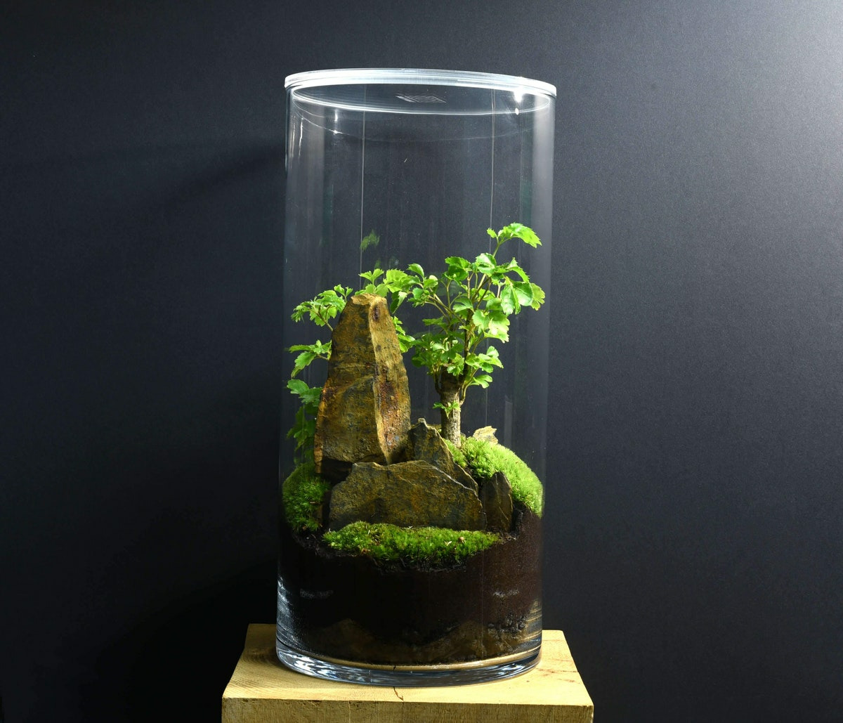 Cette gamme de terrarium est adaptée à une position centrale dans votre intérieur, dans votre salon par exemple avec un éclairage de proximité orienté vers lui, donnant un vif éclat aux nuances infinies de verts de la mousse et des feuillages des végétaux.