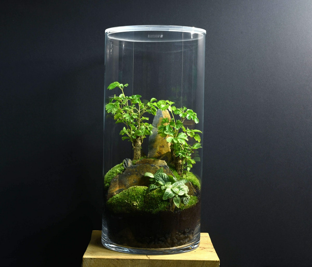 Ces deux plantes affectionnent beaucoup l’atmosphère intérieure humide et tempérée du terrarium et vous aurez le plaisir de les voir grandir rapidement jusqu’à les voir toucher le couvercle ! Ces plantes sont toutes deux faciles à tailler et vous pourrez ainsi facilement leur redonner le gabarit que vous souhaitez.